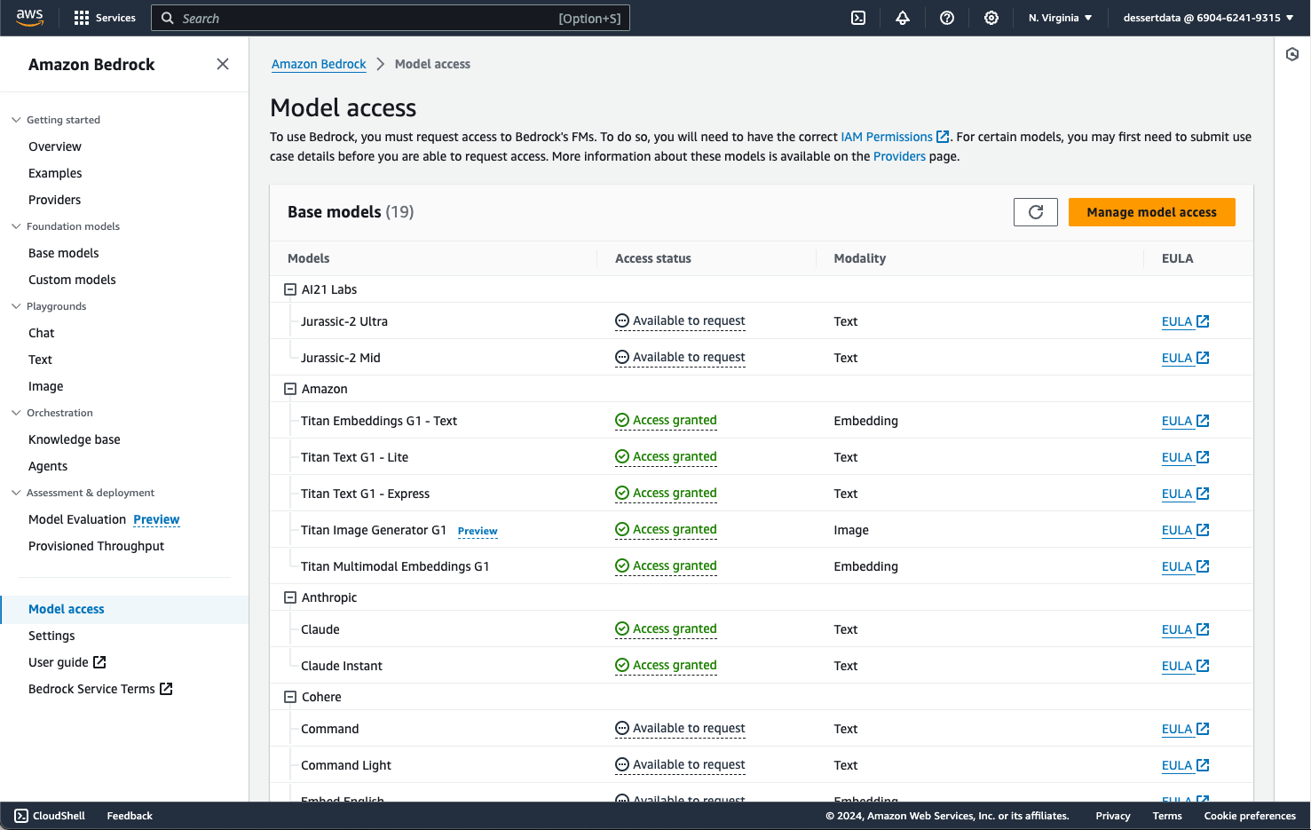 From there there's an orange "Manage Model Access" button which you can click, then check all of the models you want.