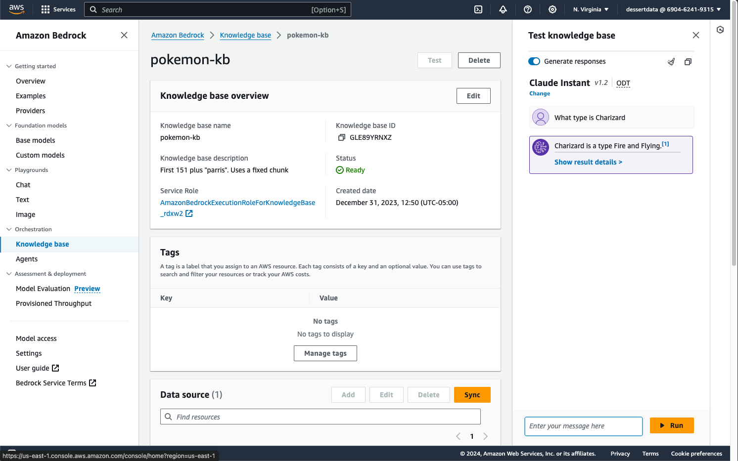 So instead of your model consuming your entire knowledge base to generate a result (which will lower accuracy, and be expensive), it instead sees something akin to the the first results page on Google search. You'll actually be able to see this in action in the AWS Bedrock playground as the chatbot will return "citations" of which data it looked at when formulating a response.